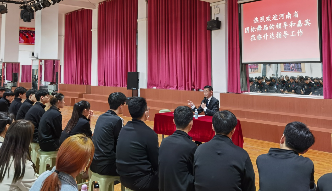 3月10日下午3点,在体育馆体育舞蹈1厅,河南省国际标准舞联盟主席尤谊为同学们解读《中共河南省委办公厅 河南省人民政府办公厅印发<关于进一步减轻义务教育阶段员工作业负担和校外培训负担的措施>的通知》等文件精神,尤主席谈到,为促进全省文化艺术类校外培训机构规范有序发展,河南省政府办公厅草拟了《河南省文化艺术类校外培训机构设置和管理指南(试行)(征求意见稿)》已发布,尤主席为同学们针对征求意见稿跟大家进行分析解读。