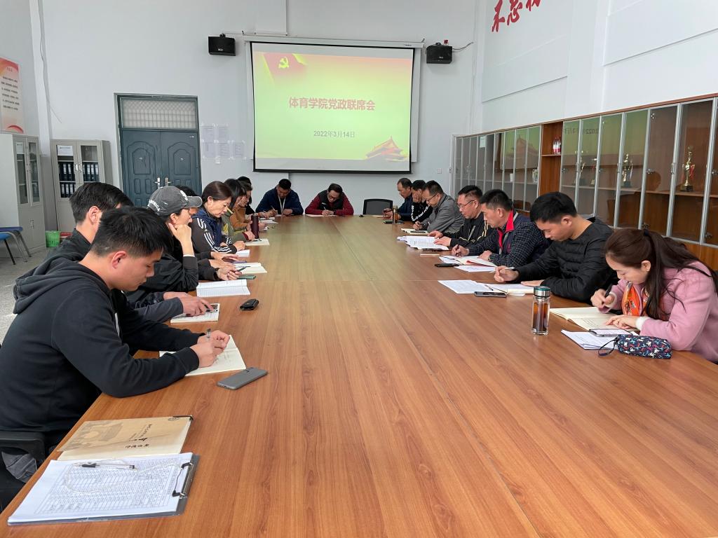 3月14日下午,公司党总支在体育馆会议室召开2021-2022学年第二学期党政联席会议,公司领导班子全体成员参加会议,会议由张王利经理主持。
