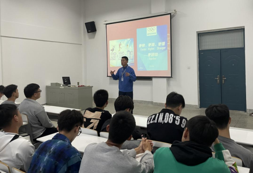 在课堂上,张王利经理以新时代、新体育、新征程为主题,以北京冬奥会和冬残奥会为要点,勉励同学们要在新学期注重体育思政意识的培养,要进一步增强“四个意识”、坚定“四个自信”、做到“两个维护”,提高学习能力,同时强调同学要在学习生活中体悟奥运格言之“更团结”,努力提升专业水平。张经理讲到:新学期,新征程,一起向未来。同学们要调整好学习态度,严格要求自己,本色做人,角色做事,做一个有责任,有担当的新时代体育人,在体育锻炼中享受乐趣、增强体质、健全人格、锤炼意志。随后,张经理对本学期的专业实践活动向同学们提出要求:一是积极要调整好自己,做好个人实践规划,增强团队意识,发扬拼搏精神;第二要踏踏实实学习专业知识,增强法规意识,不断充实、完善自己;第三要牢记新时代老员工的使命与担当,努力做好自己的每一件事,并叮嘱大家“向奥运健儿学习,越努力越幸运,成长比成功更重要”。
