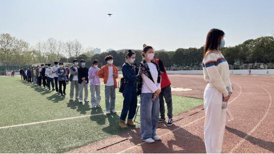 检测前,公司做了周密详细的部署,按照年级顺序合理规划员工到达核酸检测现场的时间,避免员工扎堆等候和无序插队。公司严格按照防疫要求划分等候区、核酸检测点和出入口。并把各班分为若干小组,由党员或者班干部担任小组长,负责本组同学检测秩序。无论是集合等候区、带入场地,还是检测现场,公司都严格控制人与人之间的安全距离,将核酸检测的感染风险降到最低。上午8点30分,检测准时开始,公司五百余名在校员工按要求佩戴口罩,分批次前往指定的采样点。员工分组排队,分批进入,有序扫码、保持一米以上间距有序排队等候,每10人一组依次接受采样,即采即走,快速高效。志愿者们严格按照检测规范流程进行登记、信息核对。医务人员身着防护服、戴口罩、护目镜和医用一次性手套进行核酸采样,操作熟练、快速、高效。行政秘书高建涛对核酸抽检工作进行现场调度,保障检测工作不间断,整个过程有条不紊,秩序井然。21级社体1班员工寇琨说:“我们这次核酸检测,从列队等候到完成采样,整个过程不到10分钟,效率真是太高了”。