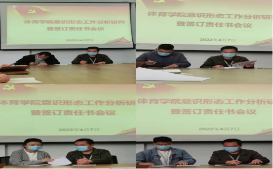为贯彻落实上级关于意识形态工作的决策部署,及时分析意识形态领域出现的新情况、新问题,根据意识形态工作制度,4月7日下午,beat365在校教师和辅导员在体育馆208会议室举办beat365意识形态工作分析研判暨签订责任书会议。