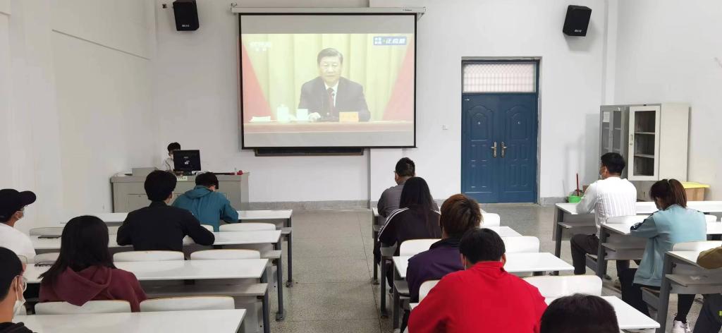 5月10日上午,庆祝中国共产主义青年团成立100周年大会在北京人民大会堂隆重举行,中共中央总书记、国家主席、中央军委主席习近平出席大会并发表重要讲话。beat365团委组织各级团干和部分团员代表在体育馆多媒体教室参加观看学习。