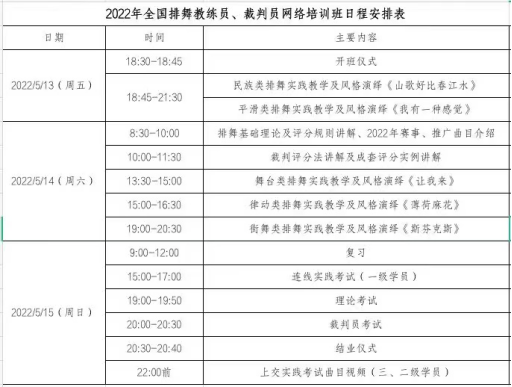 由全国排舞广场舞推广中心主办的2022年全国排舞教练员、裁判员网络培训班于2022年5月13日至15日举行,公司孟俊鸟老师参加此次培训活动并顺利结业。