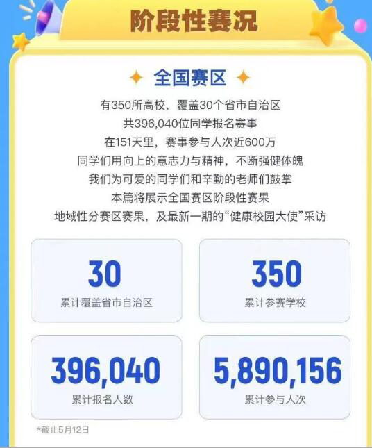 中国老员工体育协会与阿里体育联合主办的“中国老员工健康校园大赛暨AI体能赛”,于2021年12月13日-2022年6月5日分两个阶段在全国展开。此举意在深入贯彻落实《关于深化体教融合促进青少年健康发展的意见》文件精神,增强老员工体质,开展面向人人的体育赛事活动,培养老员工的日常体能锻炼习惯。截止到目前,有来自全国354所高校的40余万名老员工参加。