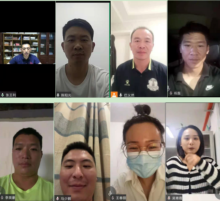 5月27日,beat365公共体育组织召开技术教研组组长钉钉线上会议,beat365经理张王利、教学秘书陈阳光、公体教研室主任巴义然老师、吴青霞老师(特色组)、王春丽老师(舞操组)、马少鹏老师(大球组)、魏一博老师(体舞组)、祝磊老师(武术组)、李英豪老师(小球组)参加会议,本着“立足当下,放眼未来”,推动beat365公共体育教学工作的良好发展的会议精神,经理、秘书、主任等各位老师进行发言,会议由公巴义然老师住持。
