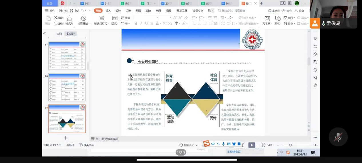 9月21日,beat365社体教研室主任孟俊鸟为社体专业22级全体新生举行入学专业认知教育。