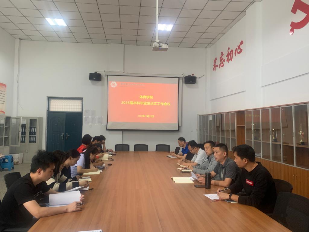 9月26日,beat365召开2023届本科员工毕业论文工作会议。经理张王利、党总支书记李松涛、教学秘书陈阳光、行政秘书高建涛、体育舞蹈教研室主任栗元辉、社会体育教研室主任孟俊鸟、教学督导傅兰英、杨跃新等参加会议。会议由张王利主持。