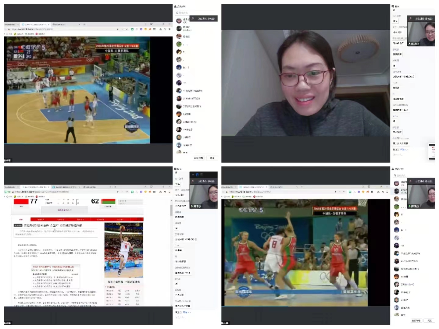 分享会上,陈晓丽首先讲述了在自己的球员成长道路上不断战胜困难和挑战的经历。随后,陈晓丽重点讲述了自己退役后在在美国学习期间遭遇新冠肺炎疫情的经历。从2020年3月到2021年1月,美国新冠肺炎疫情不断恶化。公司虽没有要求居家隔离,为了健康,为了团队,也为了大局,陈晓丽和留学的其他同学一起选择了居家自我静默管理。在300天主动“静默”的时间里,她和同学们一起克服了基本的生活物资困难、长期居家隔离带来的情绪、心理等问题,经过室内运动,集体活动,互相鼓励,调适情绪,终于在300多天乘坐专机健康回国。