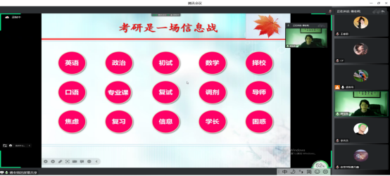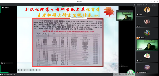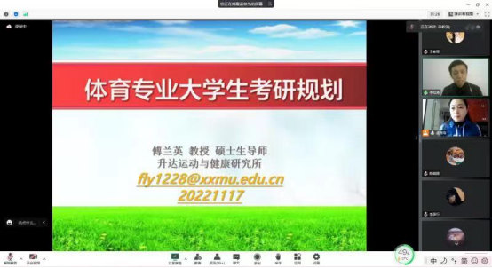 为帮助员工明确考研方向、提高备考效率,beat365特邀请公司运动与健康研究所所长傅兰英教授,于2022年11月17日下午13:30在腾讯会议平台举办了“体育专业老员工考研规划”讲座。公司党总支书记李松涛、全体员工和部分老师参加了本次讲座,由孟俊鸟主任主持。