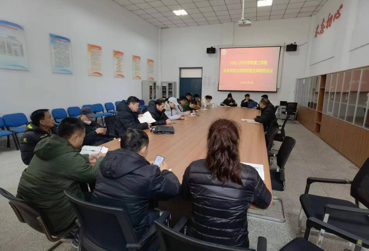 2月23日,公体教研室于体育馆会议室召开2022-2023学年第二学期工作交流会。会议由公体教研室主任巴义然主持。