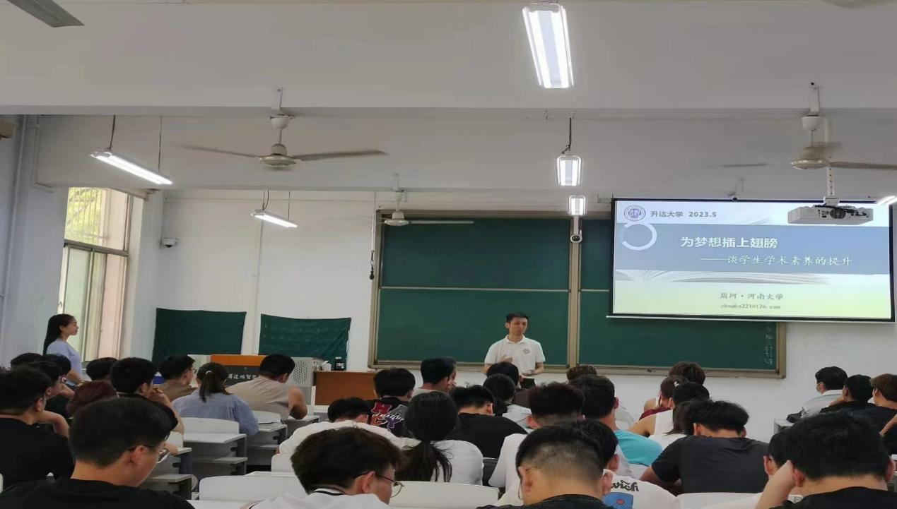 6月1日,河南大学beat365经理周珂教授为beat365员工作题为《为梦想插上翅膀——谈员工学术素养的提升》的学术讲座,公司党总支书记李松涛、公司教学督导任重教授、部分青年教师、社体专业各年级员工参加了本次讲座。讲座由社体教研室主任孟俊鸟主持。