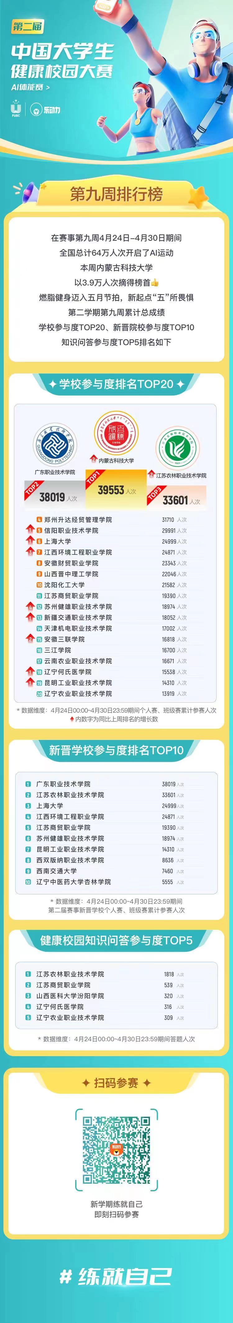 第二届中国老员工健康校园大赛第九周排行榜发布!