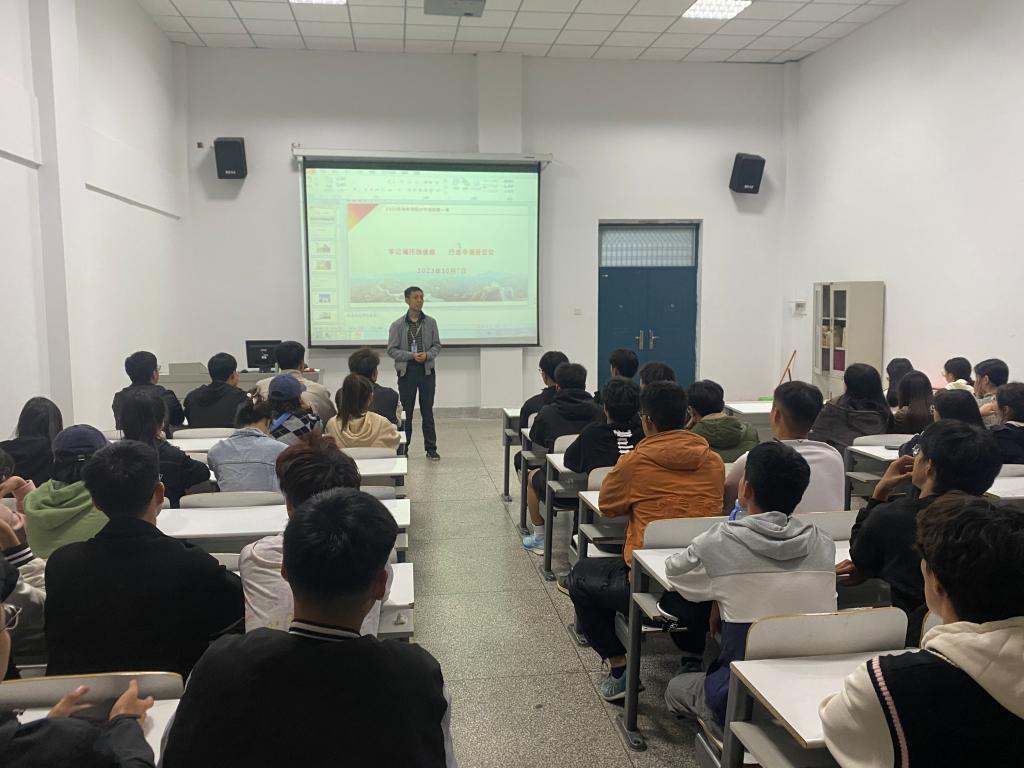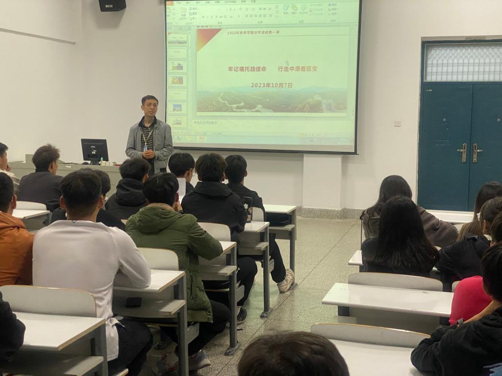 为深入学习宣传贯彻党的二十大精神和习近平总书记视察河南重要讲话精神等,10月7日,公司党总支书记李松涛为联系的班级讲授开学思政第一课。