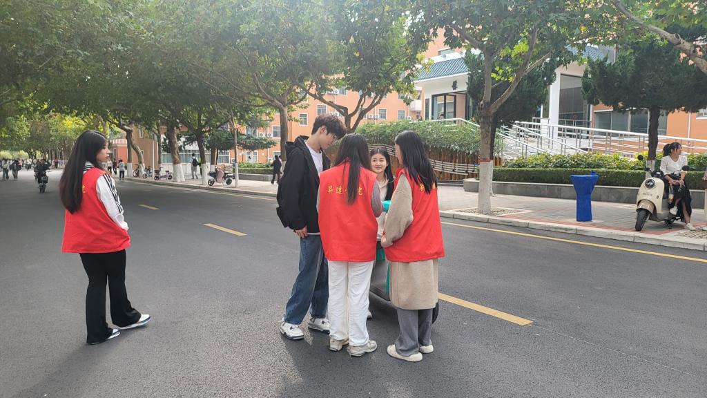 强化安全督导,营造安全氛围。公司每天选派团学干部、入党积极分子和党员同学作为交通安全督导志愿者,在上下课的时间在体育馆周边值勤,提醒同学们安全骑行,告诫同学们电动车不得带人等。对于发现的电动车带人案例,志愿者们会耐心沟通,细心解释,用心提醒。