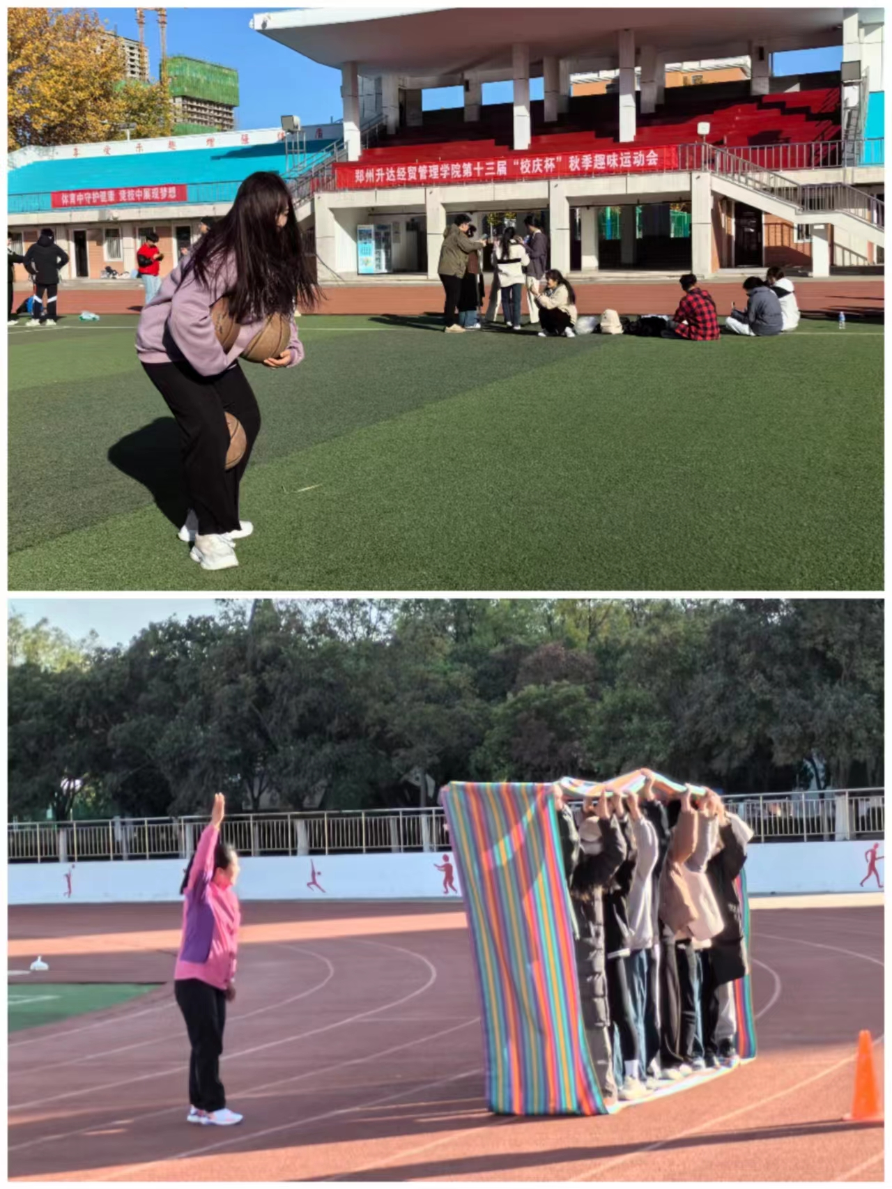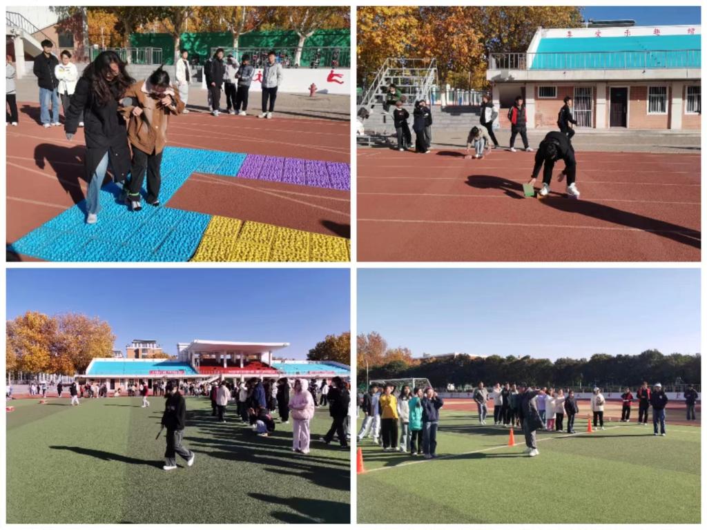青蛙跳荷叶中,同学们配合默契,顽强奋斗精神和良好的团队配合精神感染了在场所有人;指压板两人三足这个激动人心的环节中,同学们忍着疼痛,为了胜利依然努力向终点奔去;企鹅漫步中,球一次次的掉落,同学们一次次捡回来,体现出大家永不气馁,永不放弃的精神,链接加速比赛考验参赛者的协调性和团体意识,参赛者以良好的发挥和优异的表现克服了重重难关奔向终点。蒙眼击鼓中,参与者与观赛者共同协作完成比赛,尝试了信任与指挥带来的不同体验;摸石头过河以20米的长度为标准,考验参赛者的毅力,在不断坚持中取得胜利。珠行万里中,同学们用智慧和耐心,共同完成了这个看似简单却充满挑战的任务。