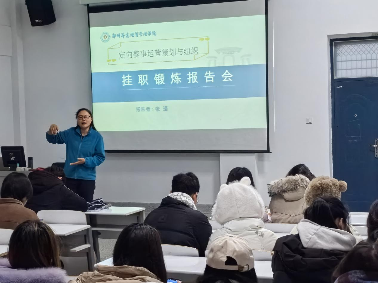 社体教研室张遥老师于去年4月选派到郑州速跑体育文化传播有限公司任赛事运营部赛事策划岗位挂职锻炼,公体教研室教师孙明轶、张丽丽两位老师于今年4月被公司分别选派赴河南青篮联体育文化发展有限公司任网络推广主管、河南御成教育信息咨询有限公司任培训总监挂职历练。