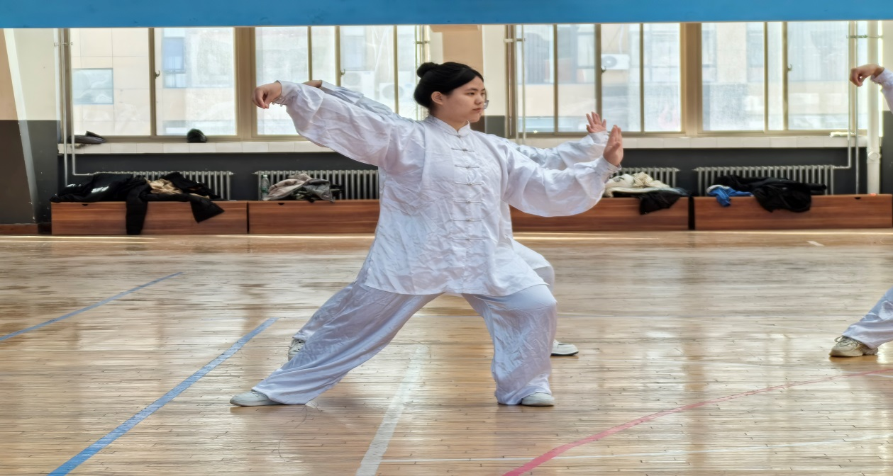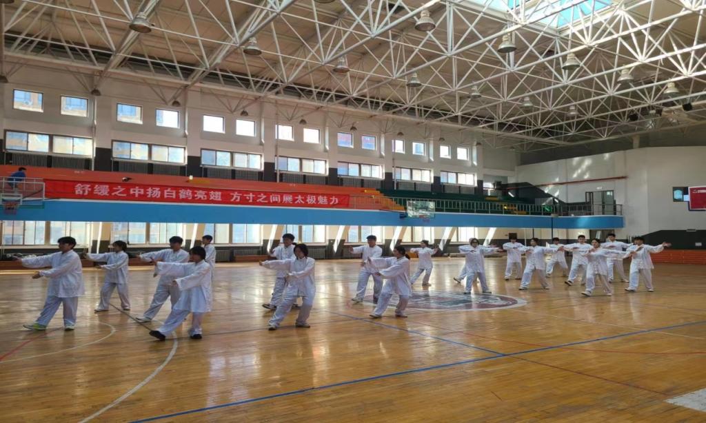 在比赛现场,各参赛队伍无论是别出心裁的队形设计,还是井然有序的太极动作展示,都在或轻灵舒缓或大气磅礴的音乐伴奏下运行自如,将太极拳刚柔相济的独特魅力展现得淋漓尽致,赢得了在场师生的热烈掌声。
