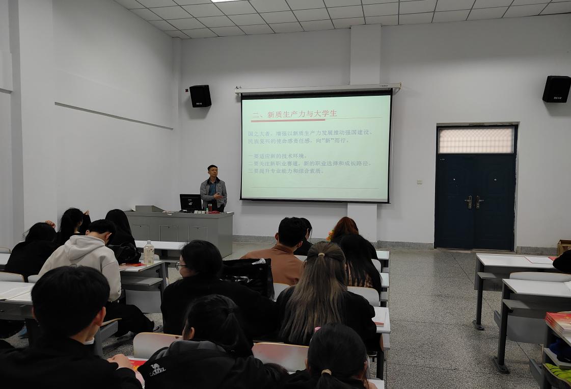 课上,李松涛以“什么是新质生产力”为切入点,介绍了习近平总书记在主持召开的新时代推动东北全面振兴座谈会上首次提出了“新质生产力”概念,并回顾了习近平总书记在中共中央政治局第十一次集体学习时的讲话中,对这一概念的系统论述。随后,李松涛从新质生产力“新制造”、“新服务”、“新业态”三方面进行讲述。