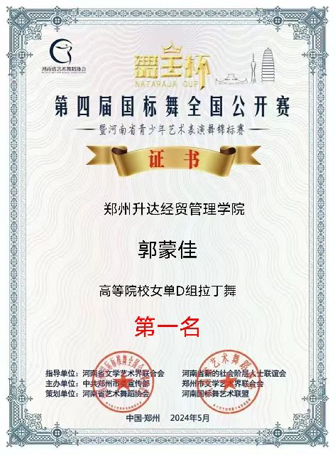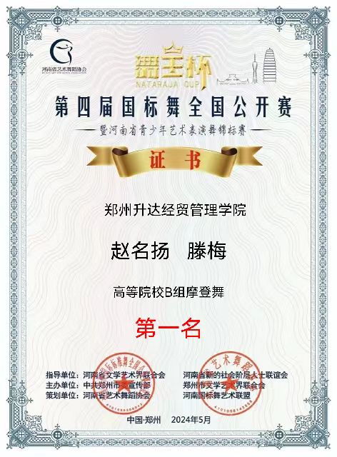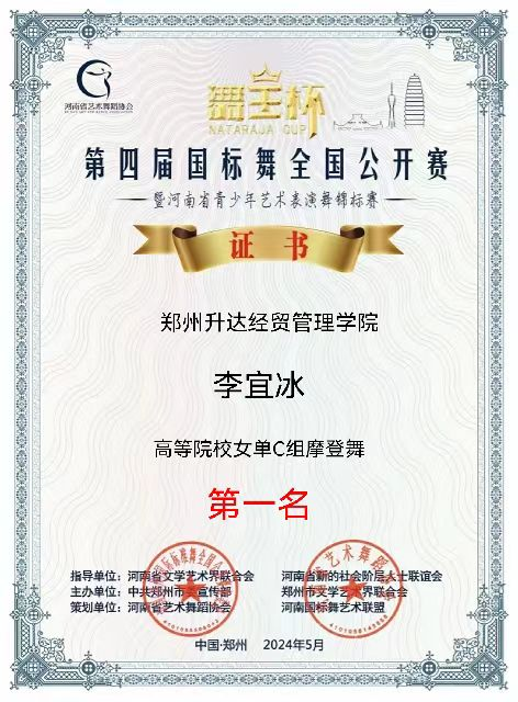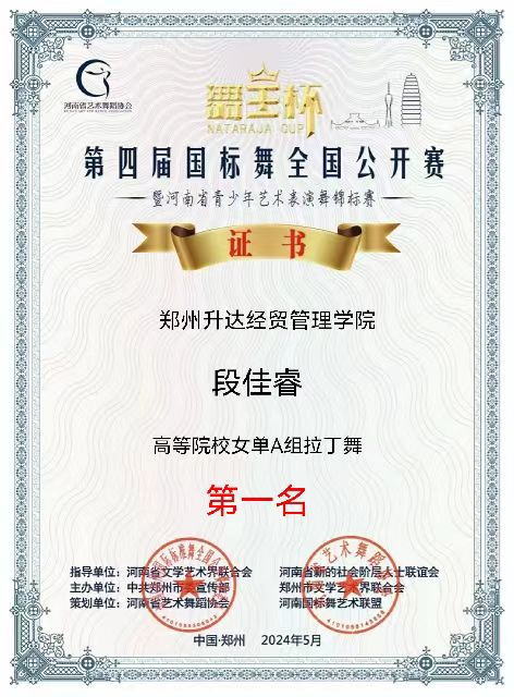 5月2日,第四届“舞王杯”国标舞全国公开赛在郑州金水区市民中心举行,吸引了来自俄罗斯、香港,以及北京、上海、深圳、福建、内蒙、四川、河北、山西、河南等省市的近200个代表队参赛,公司学子在比赛中发挥出色,荣获高校专业组10项第一名,3项第二名,4项第三名的好成绩。