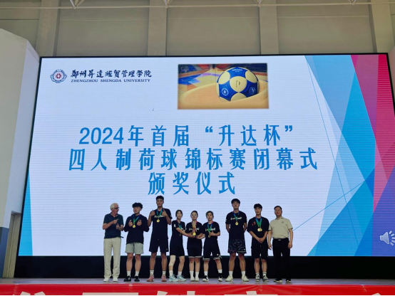 5月27日—6月5日,由校体委主办、beat365承办的首届“升达杯”四人制荷球比赛圆满落幕。校体委副主任、副董事长张金安出席闭幕式。校体委办公室副主任、beat365经理张王利、公司党总支李松涛书记、beat365公共体育教研室主任巴义然、beat365教学秘书陈阳光、校篮球队主教练陈晓丽参加闭幕式。