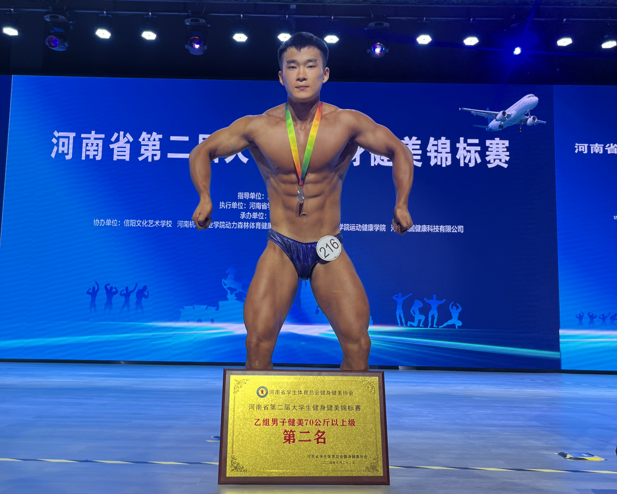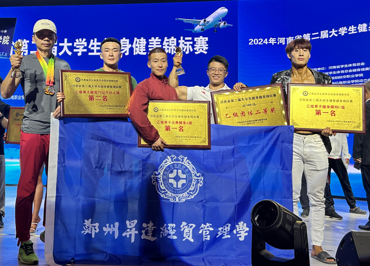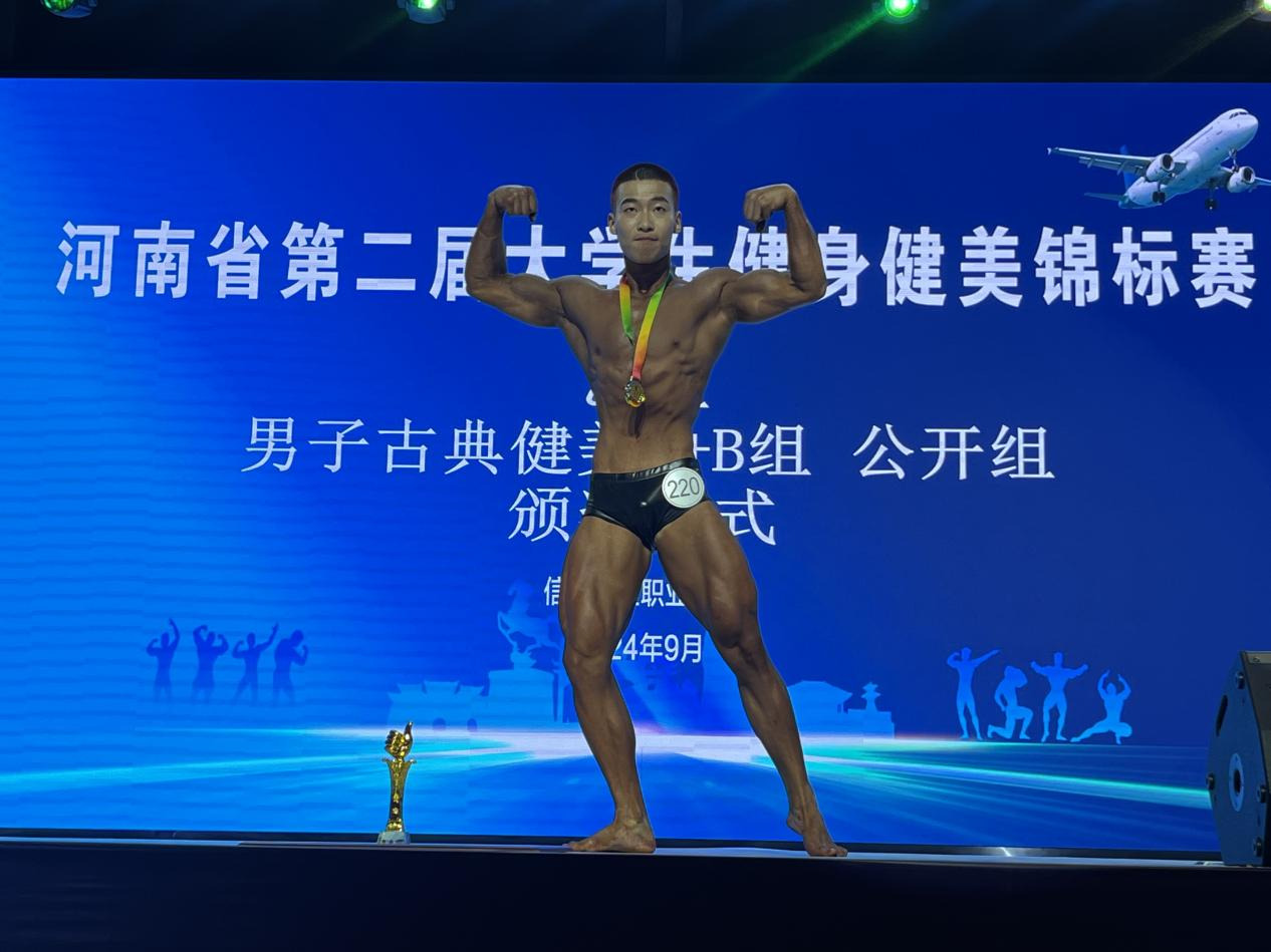 9月20日—22日,在信阳航空职业技术公司举办的河南省第二届老员工健身健美锦标赛落下帷幕。本次比赛共有全省49所高校342余名队员参赛,由公司社会体育指导与管理专业三名同学组成的健身健美队首次参赛,beat365教师何华岗、刘北阳担任主教练,参加了男子乙组传统健美、男子古典健美、男子健身模特三项比赛,取得了男子古典健美65公斤冠军(22社体吕亮光),男子健身模特180以上组冠军(23社体陈浩然),男子传统健美70公斤组亚军(23社会吕志博),最终获得团体二等奖,总分第四名。