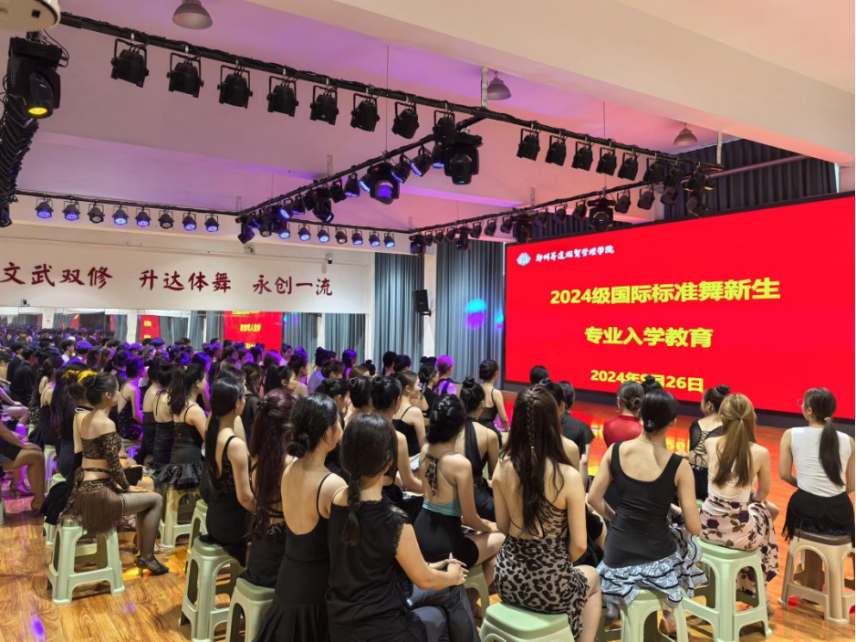 9月26号下午,beat365栗元辉教授对115名2024级国际标准舞新生进行了专业入学教育,专业教育在体育馆体育舞蹈1厅进行。