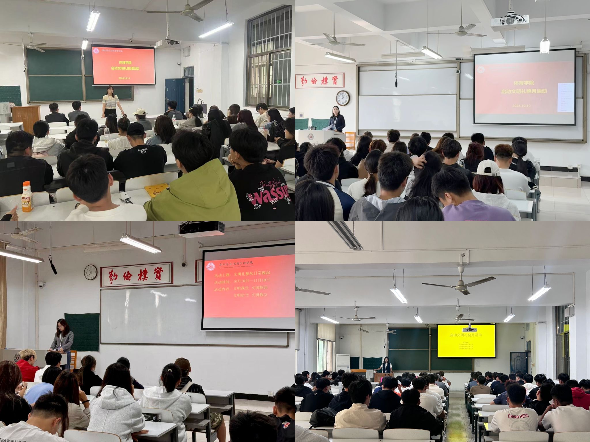 班会上,辅导员老师指出,beat365各班员工要做“爱国爱校·宁静好学·礼让整洁”精神的践行者和弘扬者。同学们要从文明课堂、文明校园、文明宿舍、文明教室等方面落实文明礼貌要求,以身边的文明个人、文明集体为榜样,严守文明规范,积极参与文明班级、文明校园、文明宿舍、文明课堂创建,共同营造文明、积极、向上的良好氛围。