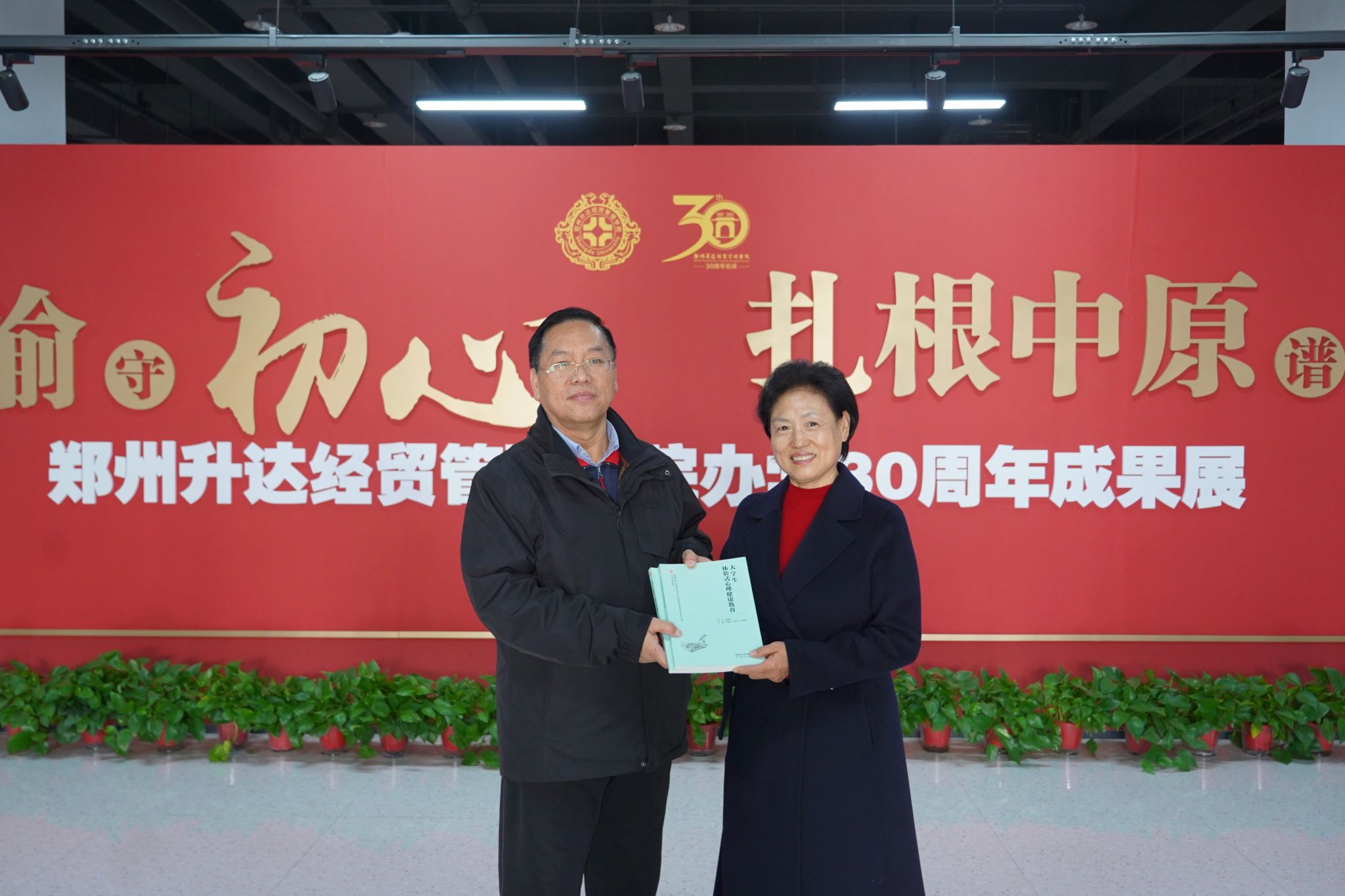讲座开始前,张金安向徐慧玲赠送书籍《梅花香自苦寒来》,徐慧玲向公司赠送她主编的书籍《老员工体验式心理健康教育》。