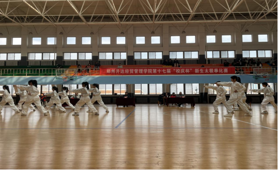 在比赛现场,各参赛队伍无论是别出心裁的队形设计,还是井然有序的太极动作展示,都在或轻灵舒缓或大气磅礴的音乐伴奏下运行自如,将太极拳刚柔相济的独特魅力展现得淋漓尽致,赢得了在场师生的热烈掌声。