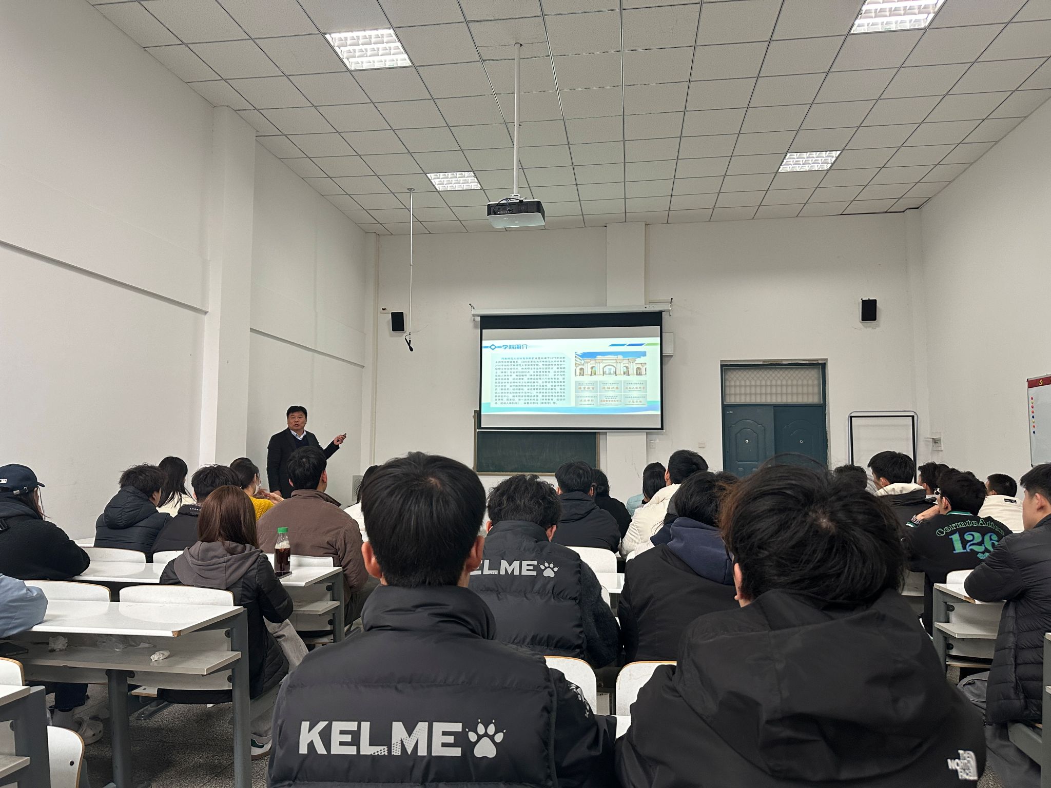 讲座伊始,岳贤锋经理凭借在体育教育领域多年积累的丰富经验与深厚学术造诣,深入浅出地分析了当下体育专业考研的整体形势。随后,他详细讲解了河师大体育专业的招生政策,用数据展示报考人数趋势及录取比例,让同学们对今后的考研形势有了清晰认识。讲座过程中,同学们积极提问,岳贤锋经理耐心解答,气氛热烈,现场不时响起阵阵掌声。