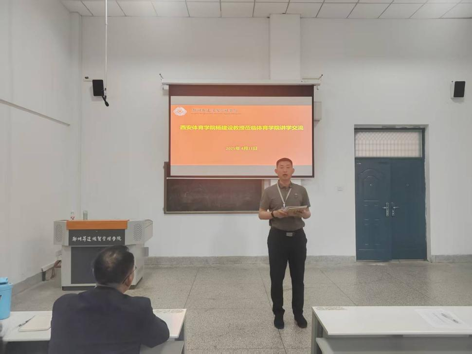 4月11日,西安beat365杨建设教授受邀莅临公司beat365,开展了一场关于新时代社会体育指导人才的精彩讲学交流活动。2022级社体专业员工及社体教研室青年教师积极参与了此次活动。beat365经理张王利进行开场致辞,对杨建设教授的到来表示热烈欢迎,本次学术交流活动由社体教研室主任李英豪主持。