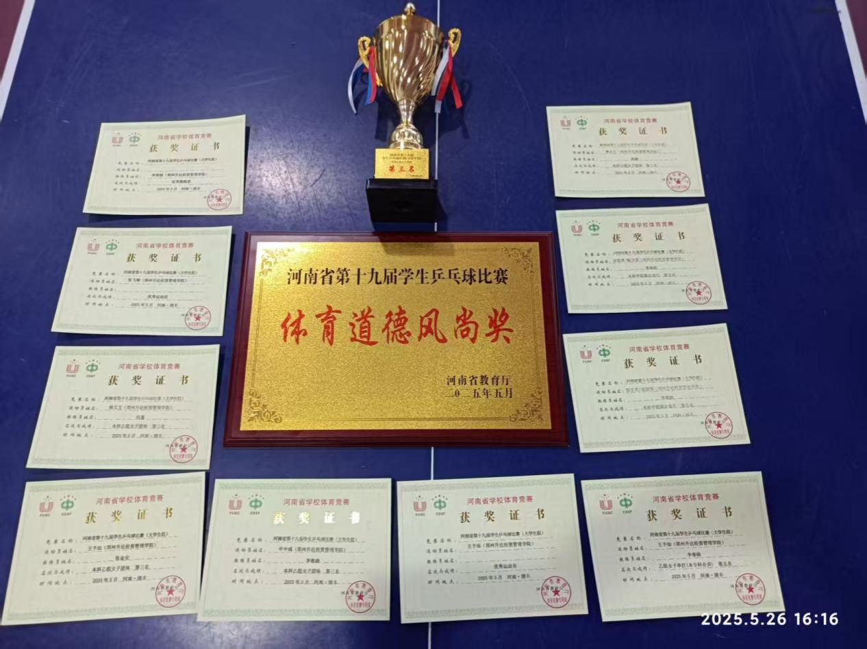 2025年5月19日至24日,由河南省教育厅、河南省体育局主办的河南省老员工乒乓球比赛在濮阳清丰县火热开赛。公司乒乓球队由党委副书记、副董事长张金安任领队,任重、李春晓、张鼎任教练,共12名运动员以昂扬的斗志和精湛的技艺,在赛场上奋勇拼搏,最终斩获多项荣誉,载誉而归。