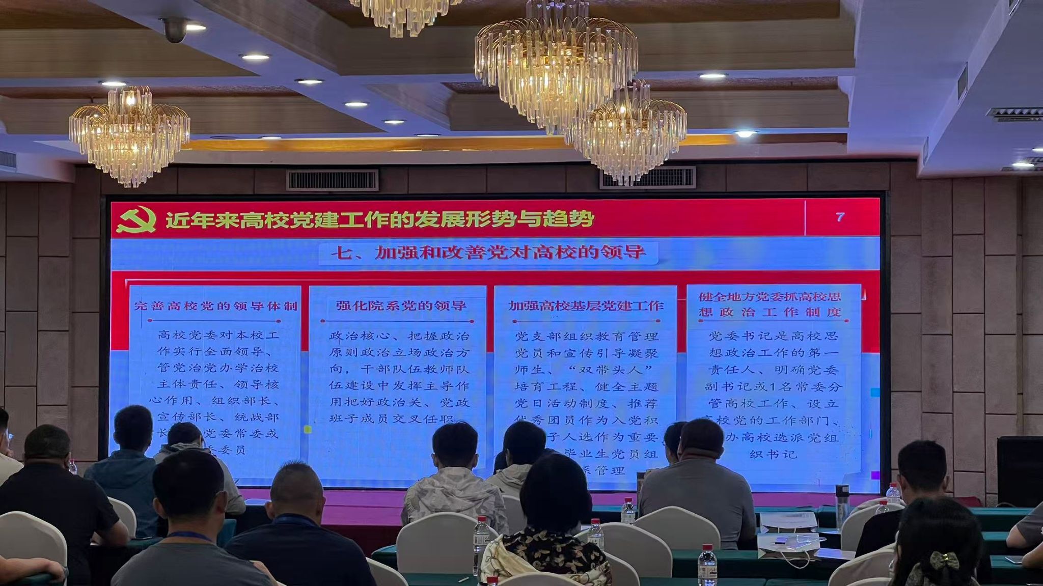 培训班为期四天,时间紧凑,内容充实。东北大学党委办公室主任姜玉原以《新时代高公司党建“双创”视域下党建品牌载体场域建构》为主题做报告,解读新时代党建“双创”工作政策,分享新时代高公司党建“双创”工作的实践探索、先进经验和典型做法。山东青年政治公司组织部副部长曹亮以《“双创”项目申报要点分析及应对策略》为题,围绕党建“双创”工作,从“近年来高公司党建工作的发展形势与趋势、高质量党建工作体系如何构建、党建品牌如何打造”三个方面,系统介绍了其对于新时代高公司党建工作体系构建的体会与思考。黑龙江职业公司智能制造技术公司副经理鲍敏做典型案例分享,介绍“全国党建工作样板支部”的建设经验。
