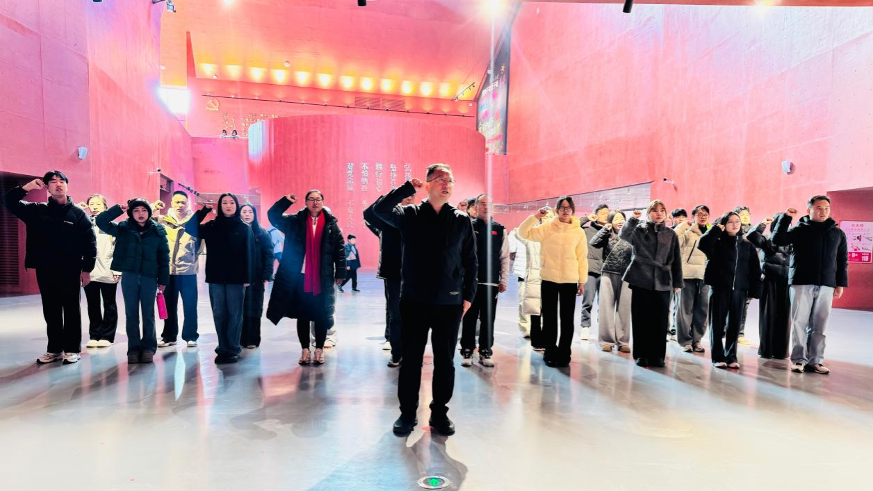 参观过程中,全体党员神情庄重,不时驻足凝视,交流感悟。一件件珍贵文物、一段段感人史实,生动再现了那段风雨如磐的峥嵘岁月,让大家接受了一次深刻的思想淬炼和精神洗礼。在纪念馆内,面对鲜红的党旗,全体党员庄严举起右拳,重温入党誓词。铿锵有力的誓言,表达了大家不忘初心、牢记使命,为党的事业奋斗终身的坚定决心。