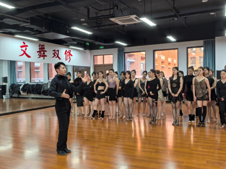 范老师分别用恰恰舞和桑巴舞对拉丁舞肌肉力量的运用进行演示和讲解,范老师的讲座理论联系实际,通俗易懂,使同学们很快掌握了动作的要领,同学们纷纷表示收获很大。范老师也对升达公司国标舞专业同学们的专业能力给予了肯定,也预祝同学们刻苦训练为公司增光添彩。