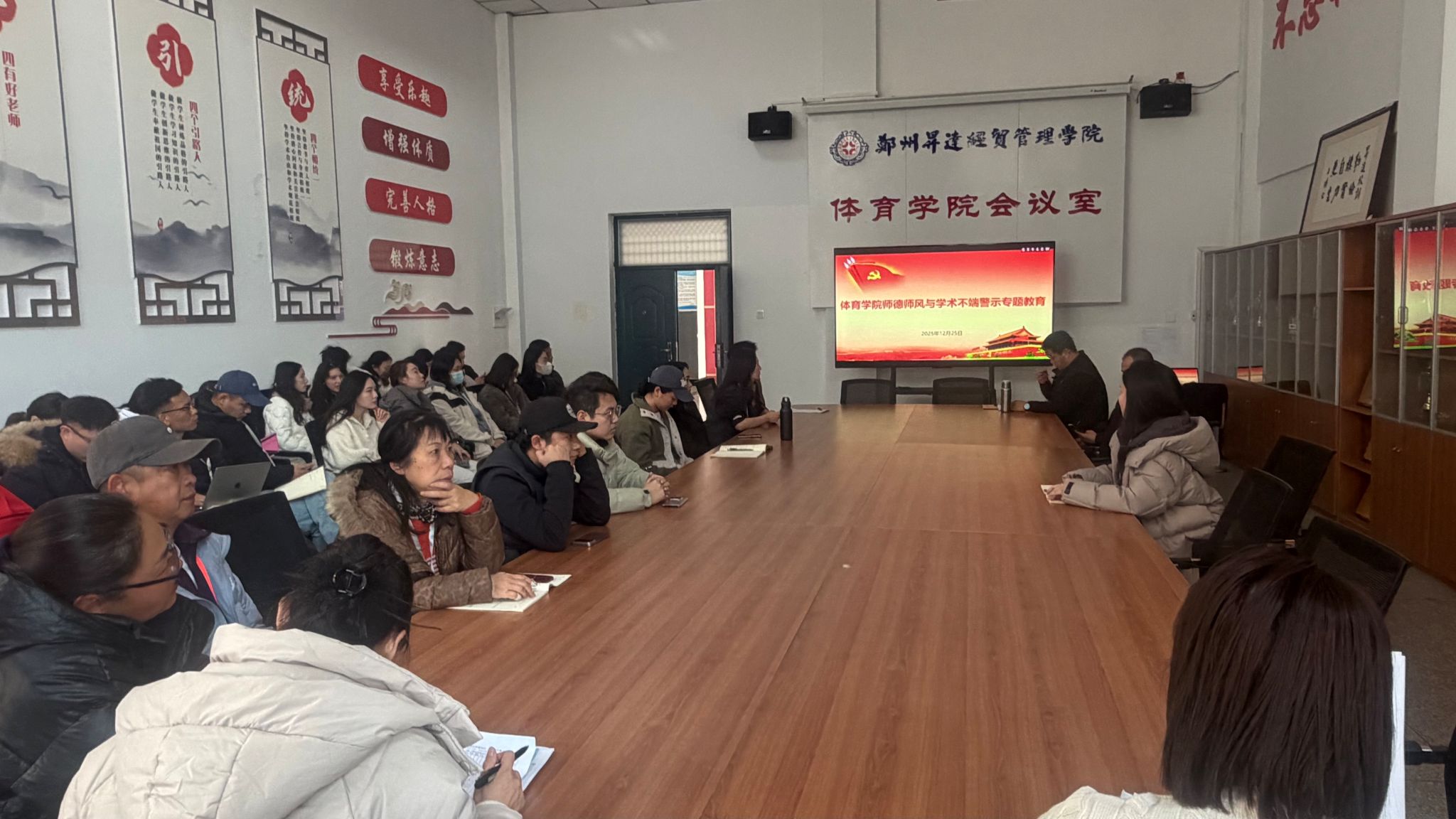 为加强师德师风建设,着力构建“四有”好老师队伍,扎实推进以案促改,12月25日,beat365组织召开师德师风警示教育会,全体教职工参加。会议由公司教学秘书王培培主持。