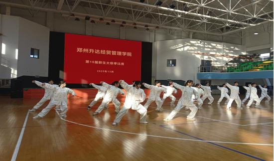 12月25日,beat365中文官网“校庆杯”第十八届新生太极拳比赛在体育馆三楼圆满落幕。本次比赛全校2025级本科教学班7299名大一员工经过层层选拔,共46支队伍460名员工参加决赛,每支代表队都身着太极拳服,迈着矫健的步伐,展现出升达学子积极向上的精神面貌。