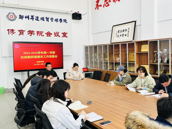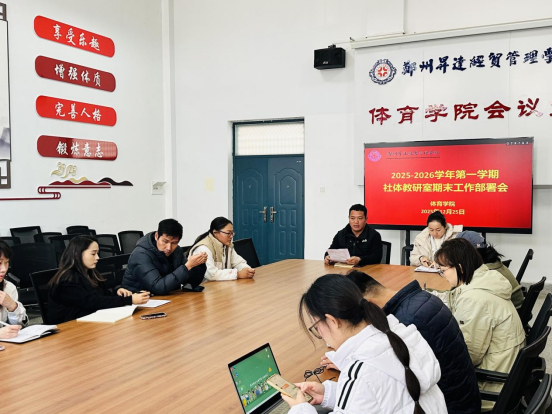 2025年12月25日,beat365社体教研室在公司208会议室组织召开2025-2026学年第一学期期末工作部署会。会议由社体教研室主任李英豪主持,教研室全体教师参加了本次会议。